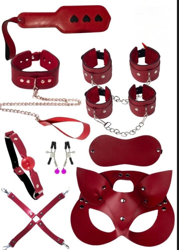 • Lisice za ruke i noge – Izrađene od udobnih materijala, sa kožnim trakama koje omogućavaju povezivanje za razne poze i scenarije.